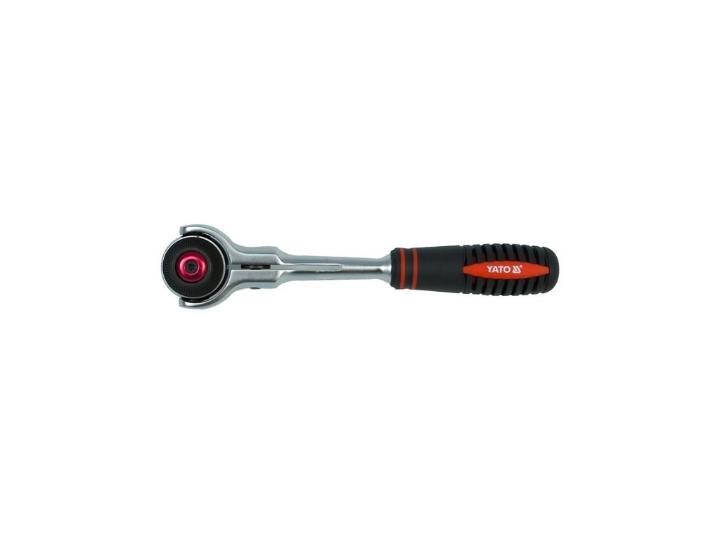 Ráčna s otočnou hlavou, plastovou rukojetí 1/4"(6,3mm), délka 145mm, ráčnový mechanismus s 72 zubu.