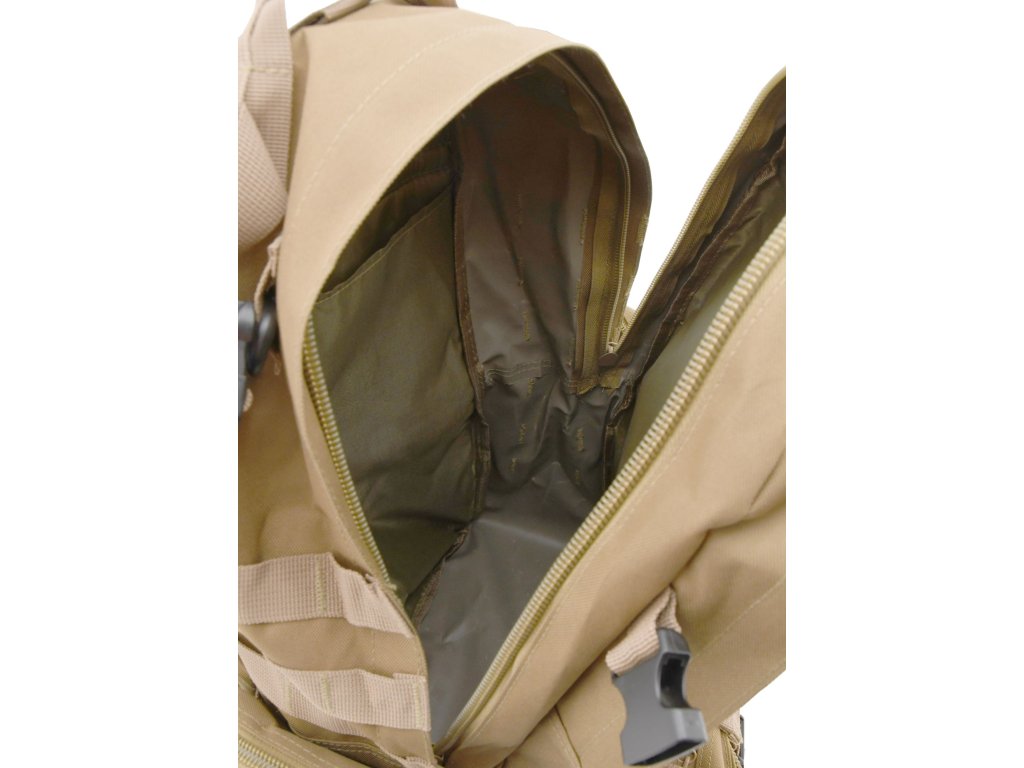 Zhotovení ze 100% polyesteru s voděodolnou PVC vrstvou z vnitřní strany. Batoh má rozměry 50 x 52 x 26 cm a nabízí objemný prostor až pro 55L předmětů. Na čelní straně a na bocích je doplněný o sumky, které lze jednoduše sundat, či umístit na jiné místo s Molle vazbou.