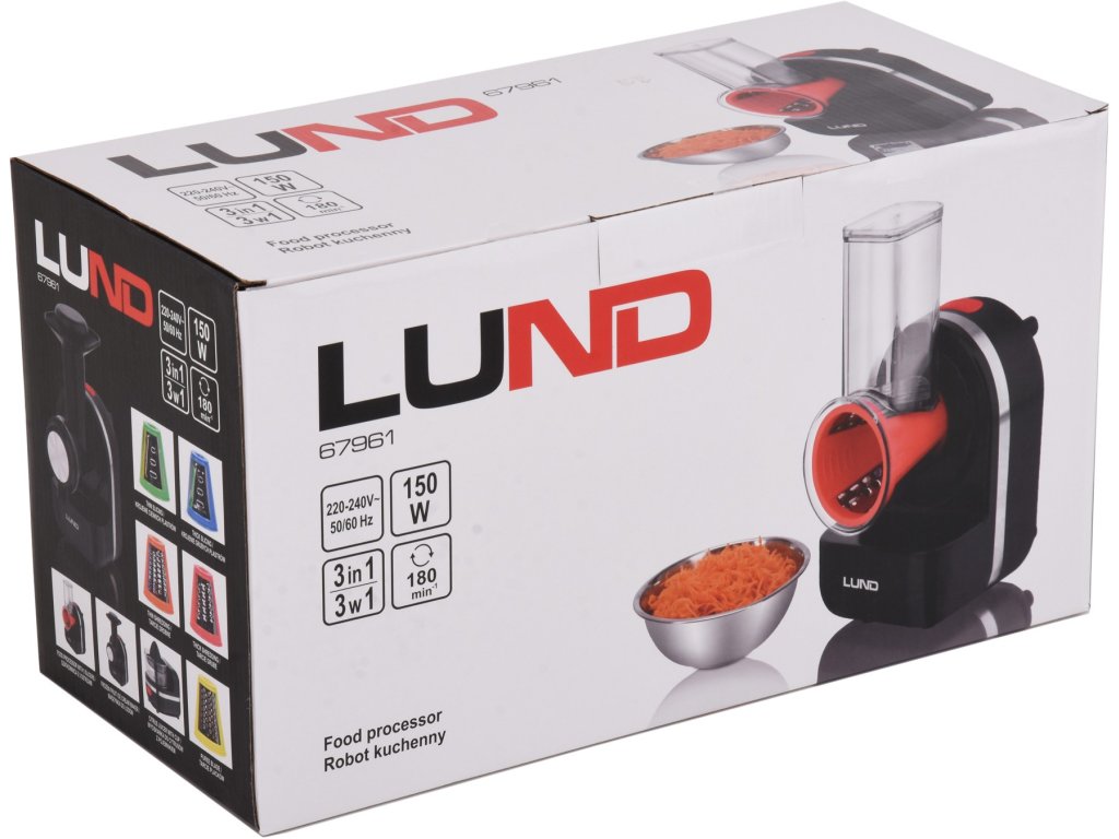 Značka LUND zahrnuje domácí spotřebiče a spotřebiče, které usnadňují každodenní činnosti a zvyšují komfort života. Široká nabídka mixérů, varných konvic, vysavačů, mopů, grilů a mnoha dalších domácích spotřebičů je ideálním řešením pro dům a zahradu, zejména pak do kuchyně. V nabídce značky nechybí ani nářadí doporučené pro základní renovační, dokončovací a dekorační práce, včetně: vrtačky, brusky a pily.