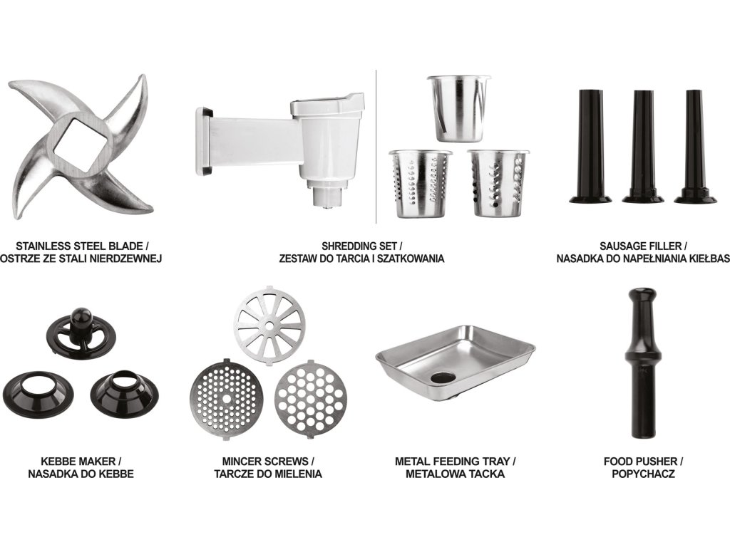 Umožňuje mletí masa na různou tloušťku, sekání zeleniny, plnění klobás atd.