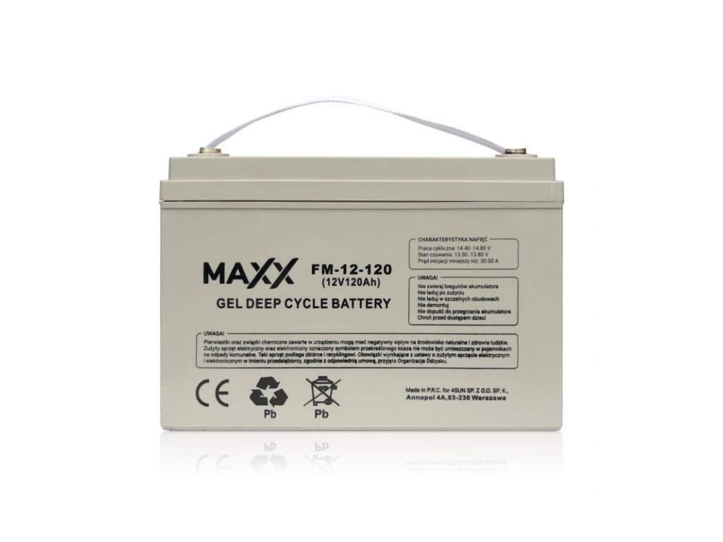 Gelová baterie 120Ah S je plně bezúdržbová baterie, jejíž elektrolyt je ve formě gelu. Nahrazení kapaliny gelem má za následek nedostatek koroze a větší odolnost vůči extrémním teplotám, nárazům a vibracím. Umožňuje vám dosáhnout stavu plného nabití i po hlubokém vybití. Gelová baterie 120Ah S je navržena pro cyklické vybíjení a nabíjení, takže je ideální pro solární systémy.
