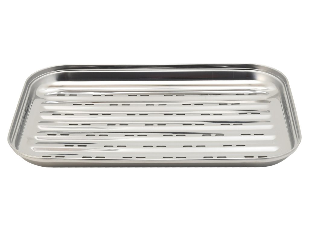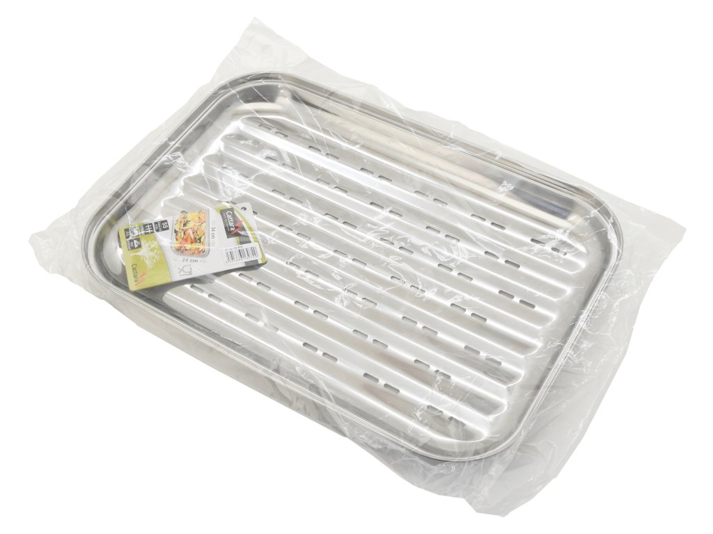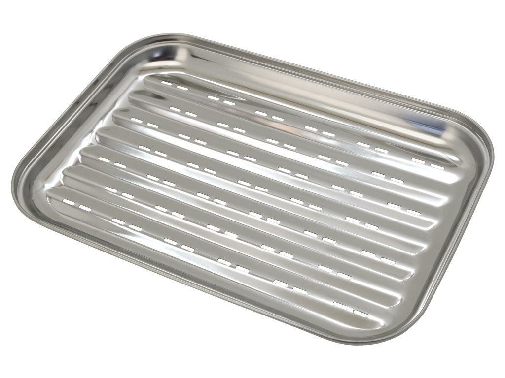 Předností je zpracování z kvalitní a silné nerezové oceli. Narozdíl od klasických aluminiových, je možné umytý ocelový tácek používat stále dokola.
