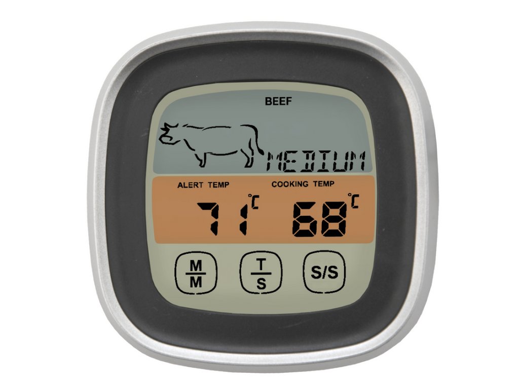 U přístroje lze nastavit jak druh masa, tak požadovaný stupeň propečení, nebo použít jako časovač. Ovládání je řešeno praktickým dotykovým displejem a vypínání spolu s přepínačem teploměru a časovače na zadní straně zařízení.