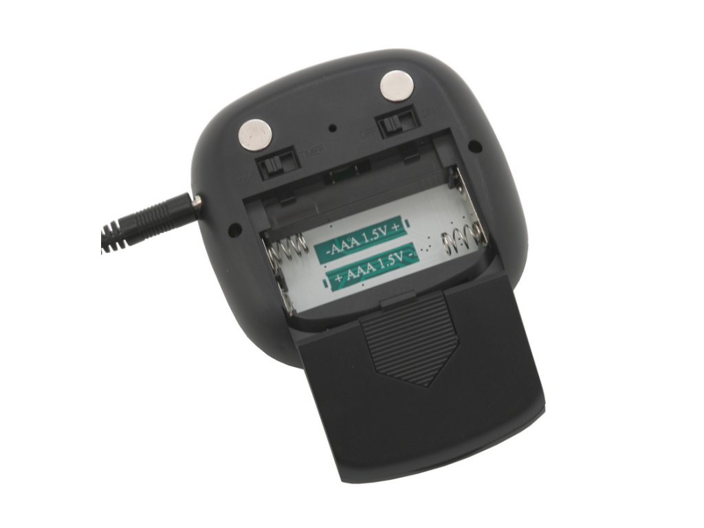 O napájení se starají 2x AAA baterie (nejsou součástí balení). Zařízení je pak opatřeno magnetem pro snadné uchycení.