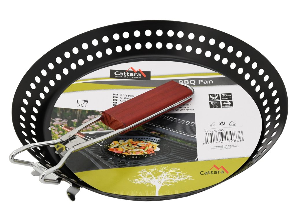 Pánev je vyrobena z kvalitní oceli černo-šedé barvy, s průměrem 30 cm a hloubkou 3,5 cm. Uplatnění najde například při přípravě plátků brambor, ryb a jiných dalších pokrmů.