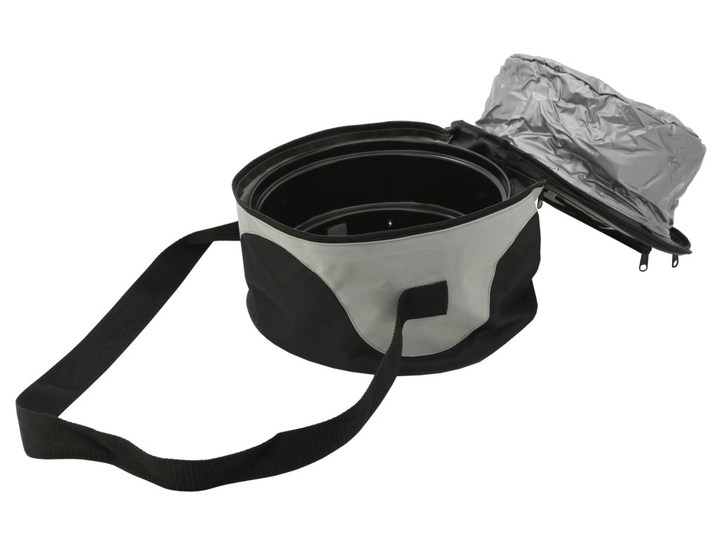 Pro snadné přenášení je složený gril umístěn do praktické tašky s popruhem. Taška je opatřena izotermickou kapsou na potraviny a navíc menší sítěnou kapsičku na drobnosti. Přepravní rozměry 30 x 17 x 30 cm.