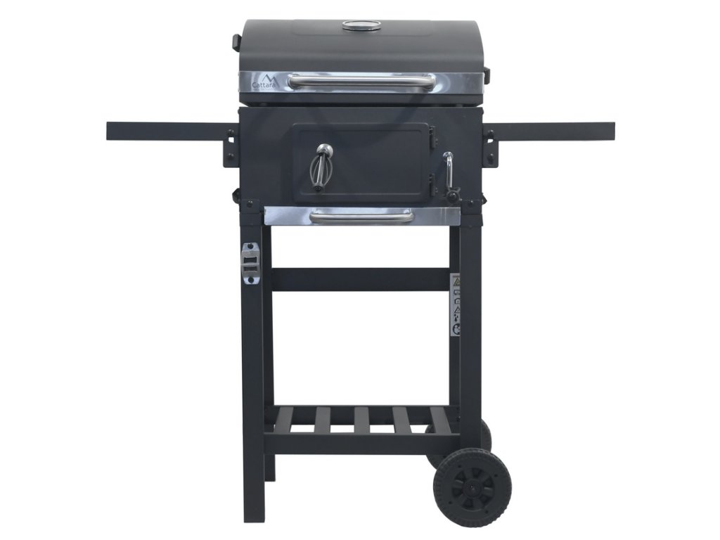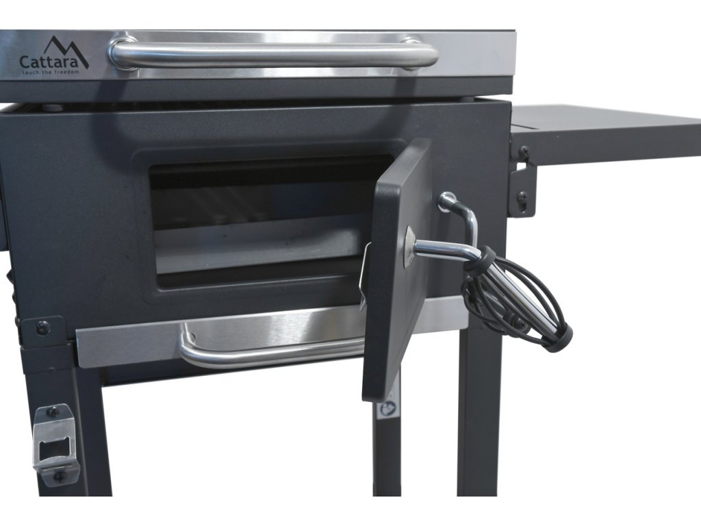 Ovládací kovové prvky a rukojeti mají dostatečné rozměry pro pohodlný úchop a zajišťují snadnou manipulaci. Oboustranná ocelová regulace ventilace perfektně lícuje s konstrukcí. Vyklápěcí víko je ve vrchní části opatřené teploměrem pro stálou kontrolu teplot uvnitř grilu.