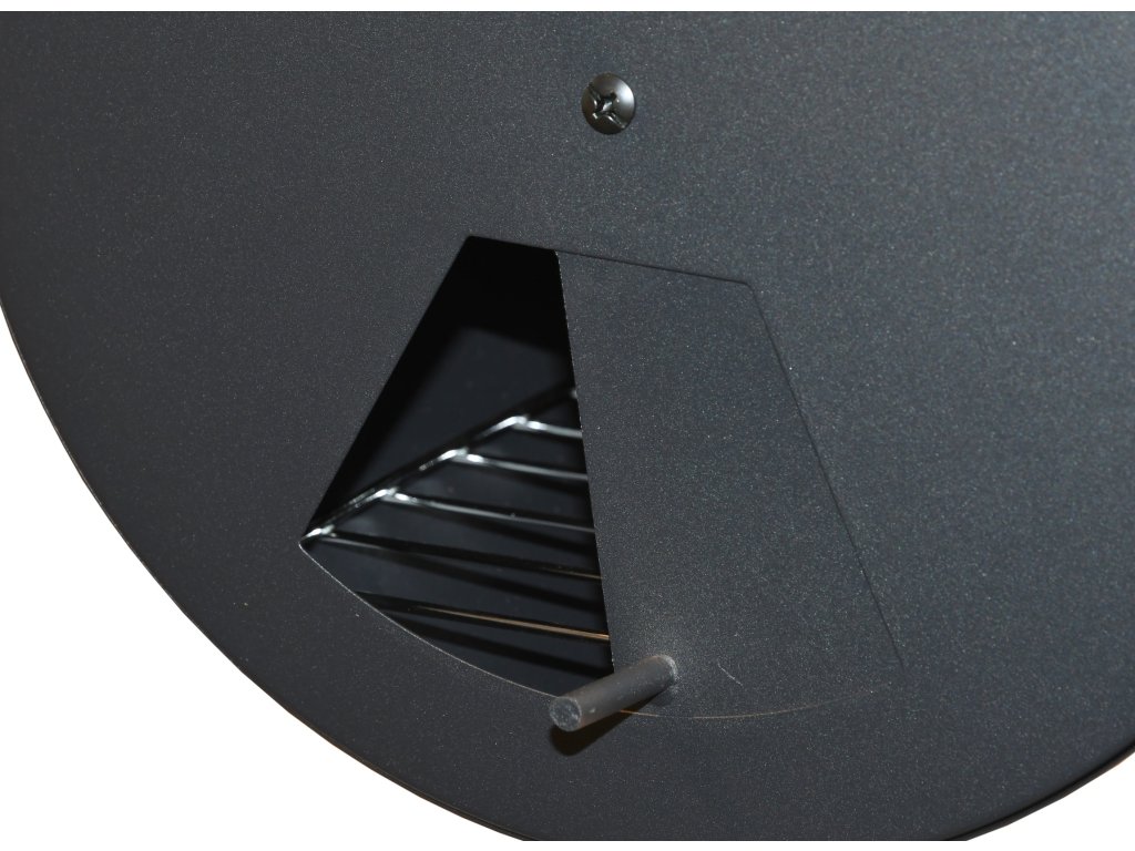 ril je vybaven komínem s uzavíratelnou klapkou, prostornou grilovací plochou s chromovaným ocelovým roštem, víkem a sekundárním grilovacím prostorem pro nepřímé grilování či zauzení.