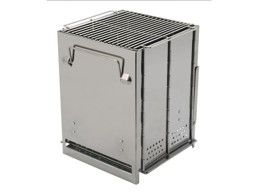 Konstrukce je vyrobena z kvalitní nerezové oceli s lesklým povrchem. Stabilita je zajištěna složením konstrukce. Rozměry grilu 22 x 21 x 27 cm.