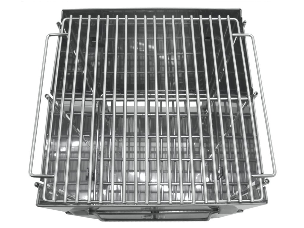 Pro tepelnou přípravu pochutin je gril opatřen ocelovým roštem 20 x 20 cm. Ventilace ve spodní části konstrukce zajistí plynulý přísn vzduchu. Ve spodní části je rovněž umístěn vysouvací popelník pro snadné vysypání zbytků uhlí.