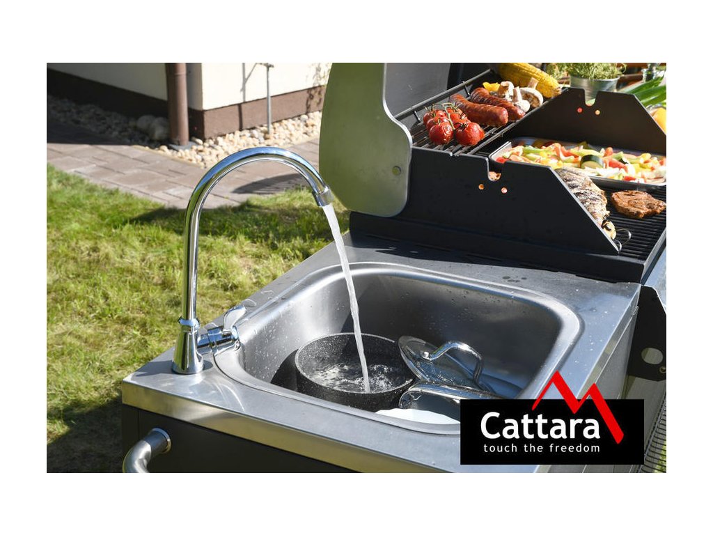 Dřez spolu s vodovodním kohoutkem je výborným pomocníkem při grilování. Kohoutek lze snadno připojit např. na vodovodní hadici.