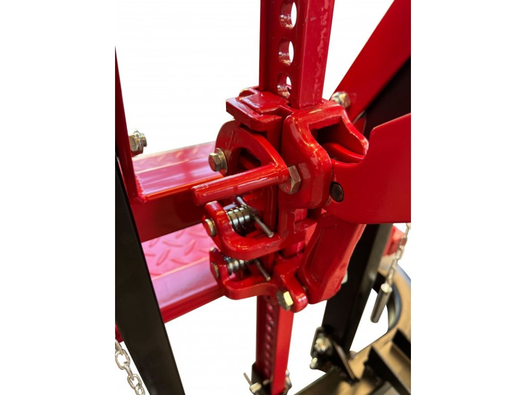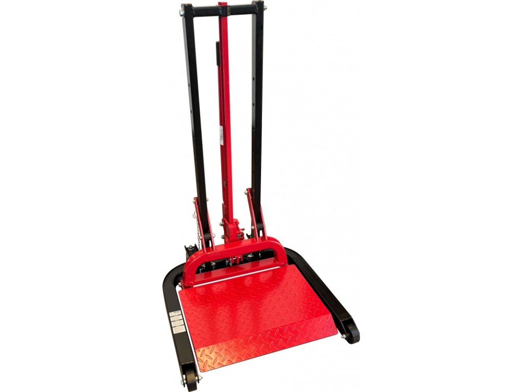 Zvedák má držák kola ve tvaru U s dvoubodovým uchycením a přídavnou desku pro zvedání vozu přes prah.