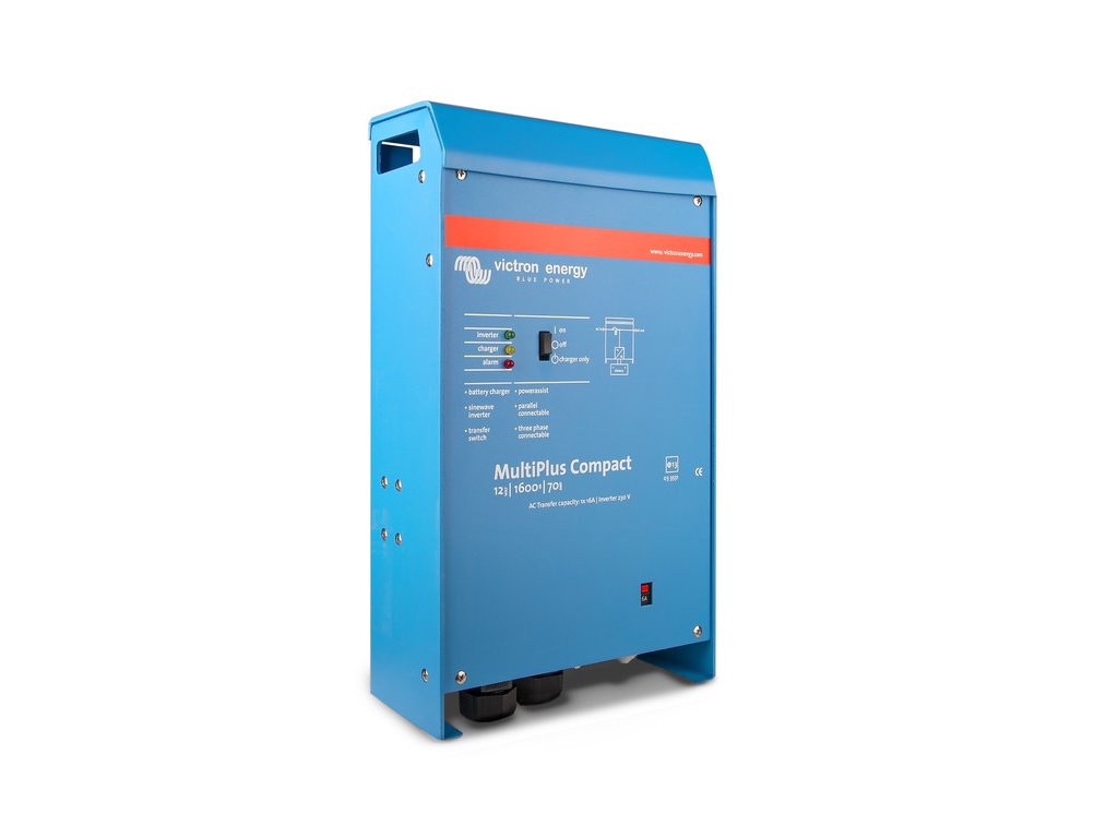 MultiPlus jak napovídá název, je kombinací střídače a nabíječky v jednom elegantním balení. Jeho řada funkcí zahrnuje čistě sinusový měnič, adaptivní nabíjení, hybridní technologii PowerAssist a další funkce pro integrace do různých typů systémů.