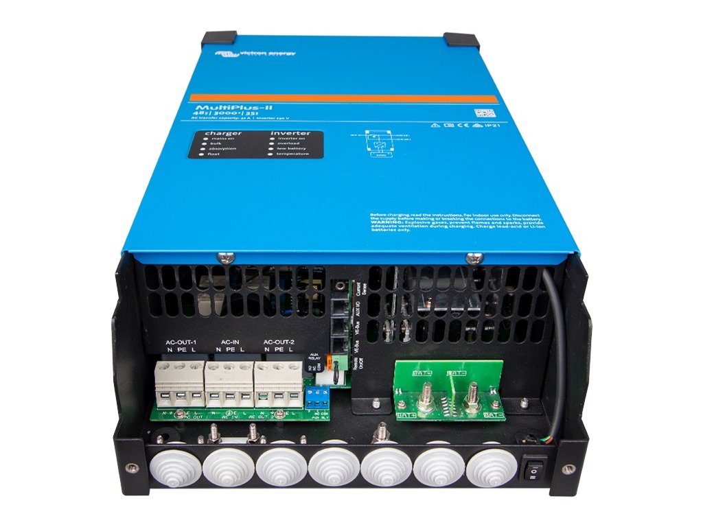 MultiPlus-II, jak název napovídá, je kombinací střídače a nabíječky v jednom elegantním provedení. Jeho řada funkcí zahrnuje čistě sinusový měnič, adaptivní nabíjení, hybridní technologii PowerAssist a další funkce pro integrace do různých typů systémů.