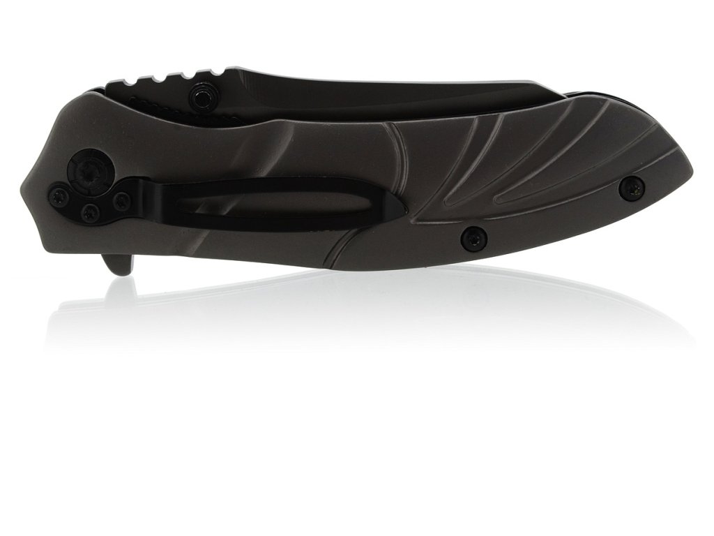 Rukojeť je doplněna klipsem k přychycení za okraj kapsy, opasek apod. Střenky jsou kvalitně zpracovány z nožířské oceli 420J1 potažené titanem.