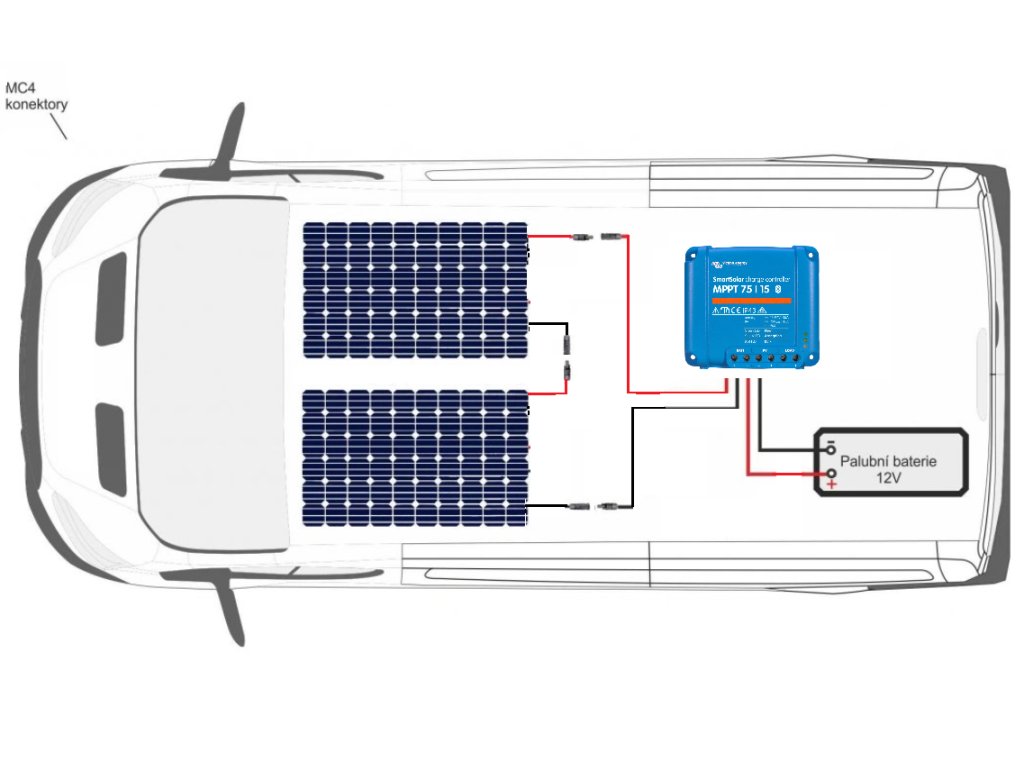 - 2x Solární panel Victron Energy 90Wp/12V (rozměry 780x668x30mm)