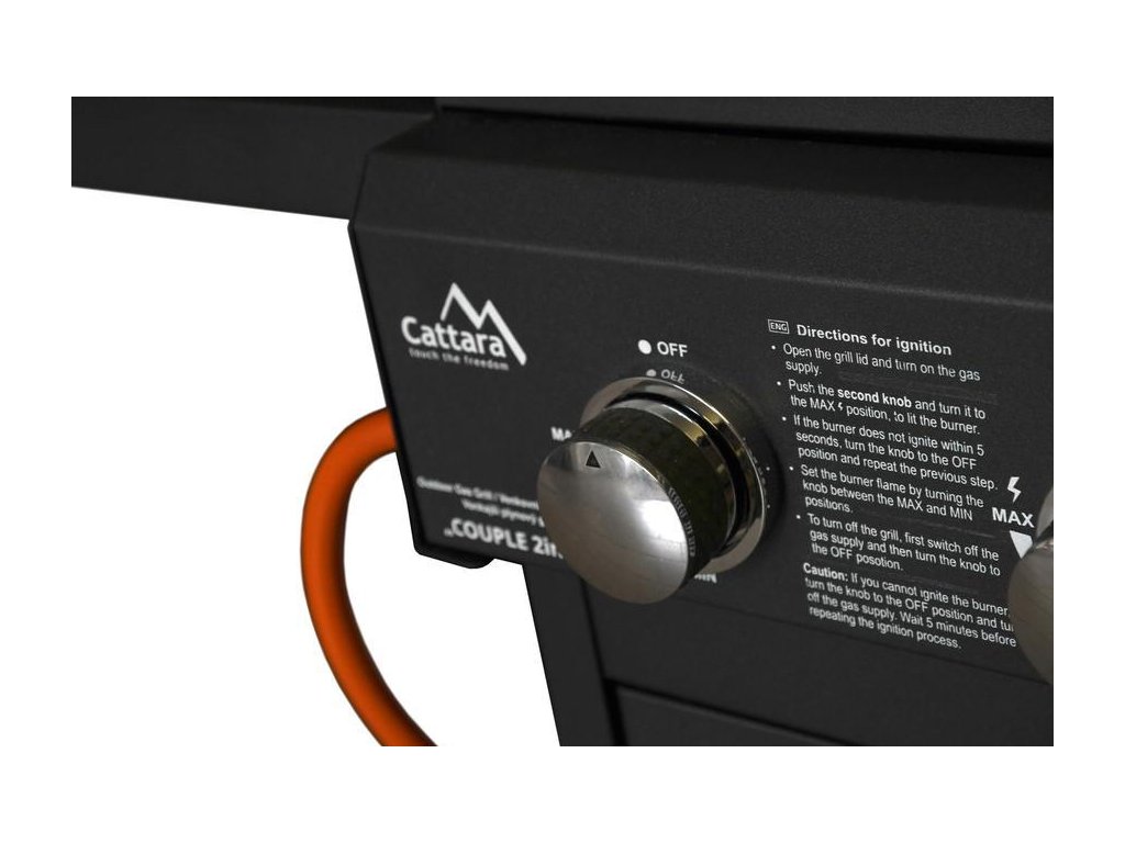 Plynový gril je opatřen piezo zapalováním. Každý ze tří hořáků je plynule regulovatelný otočným voličem na čelním ovládacím panelu. Celkový výkon plynového grilu je až 8,4 kW.