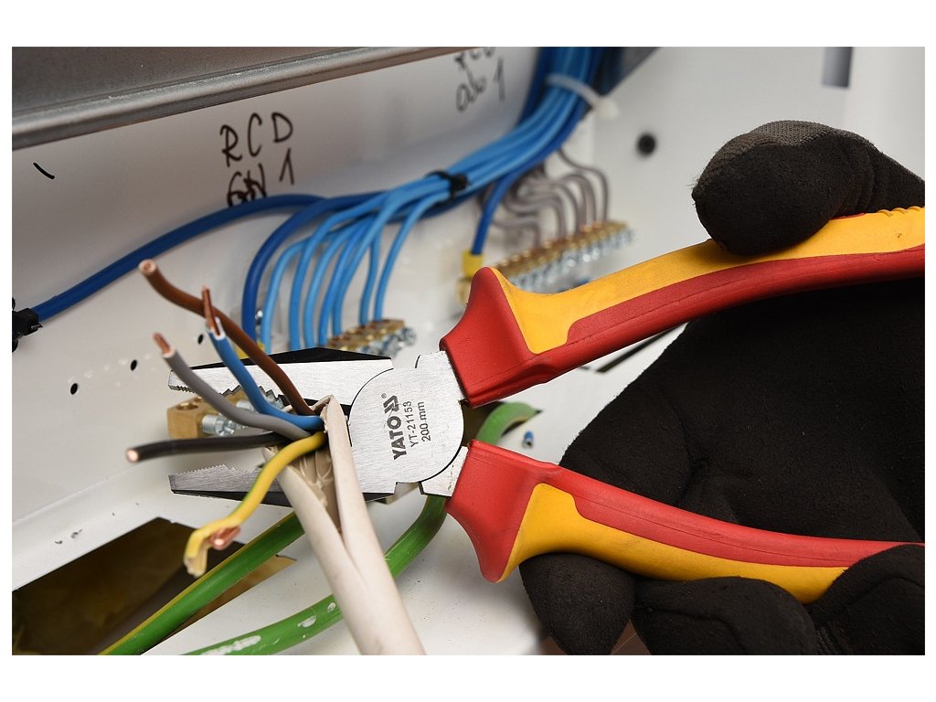 Kleště mají na rukojetích vícevrstvou izolaci s certifikátem VDE, která umožňuje použití při práci s napětím do 1 kV.