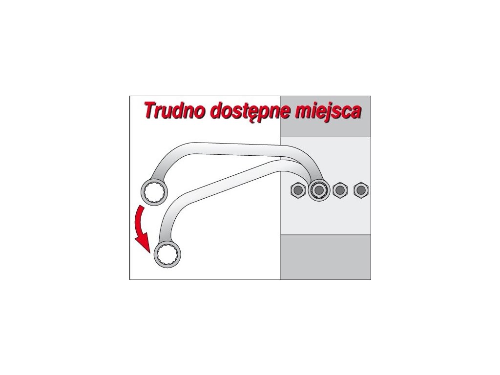 Očkový obloukový klíč typu "C" vyrobený z kvalitní chromvanadiové slitiny oceli (CrV 6140). Povrch je částečně satinovaný a leštěný do vysokého lesku.