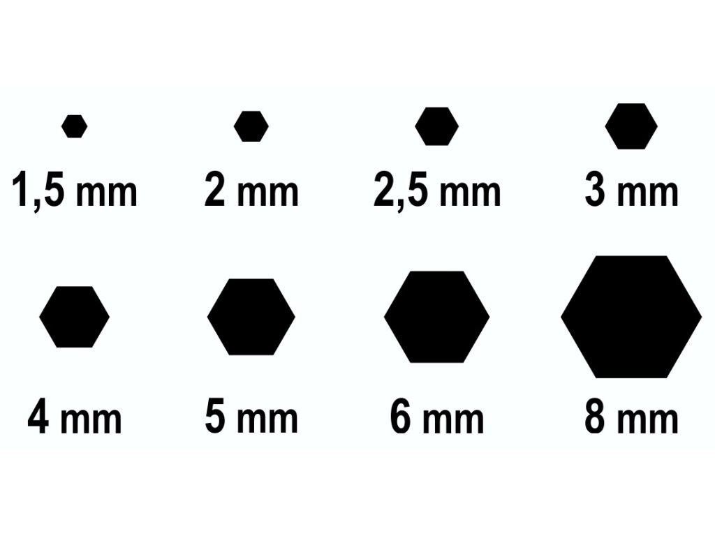 1,5; 2; 2,5; 3; 4; 5; 6; 8mm .