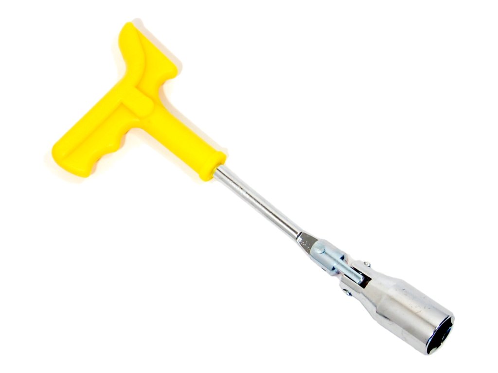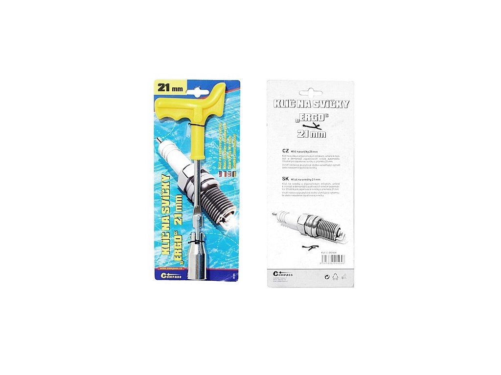 Kovový klíč (21 mm) určený k montáži nebo demontáži zapalovacích svíček automobilu. Kloubová redukce a speciální ergonomické zakončení klíče pro snazší manipulaci.