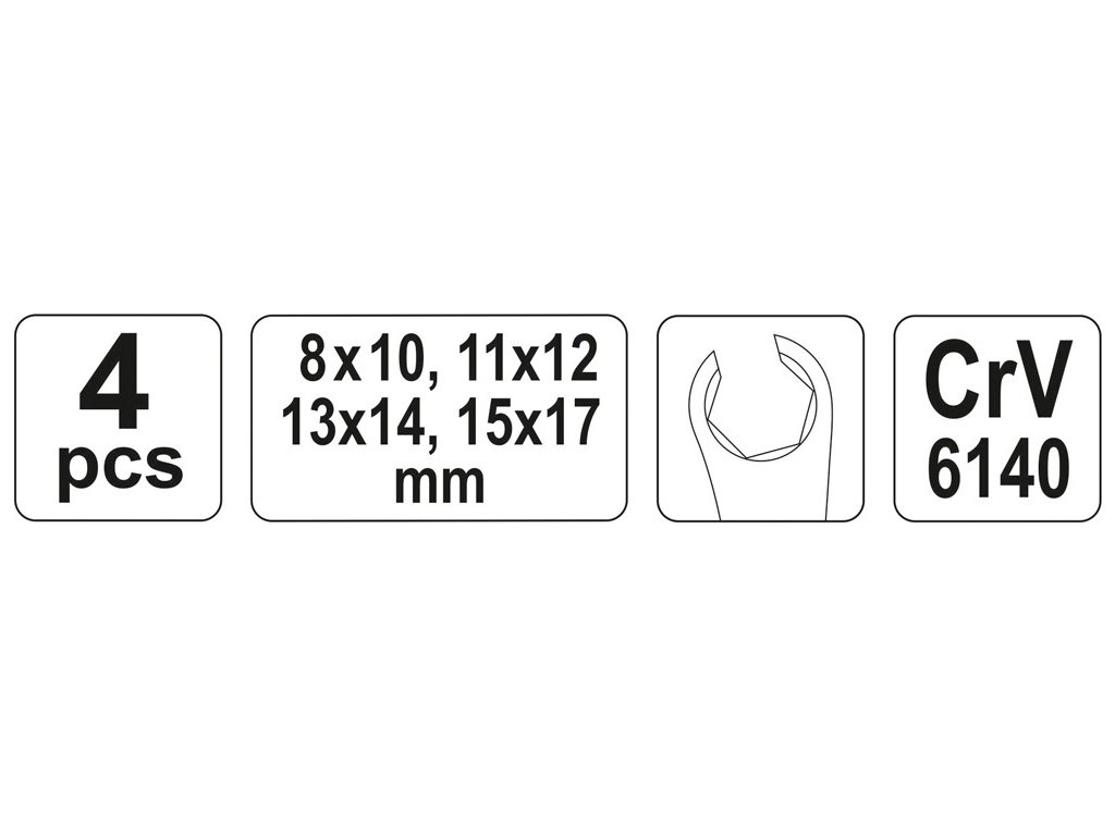 Balení obsahuje klíče 8x10, 11x12, 13x14, 15x17 mm.