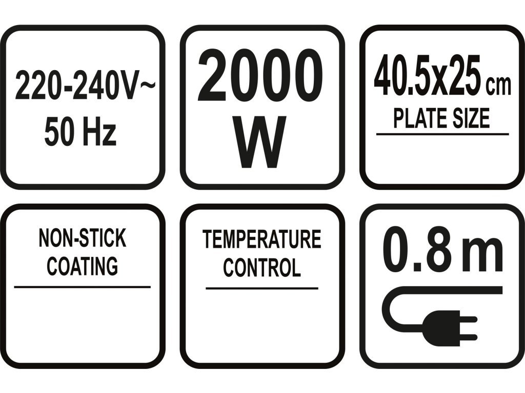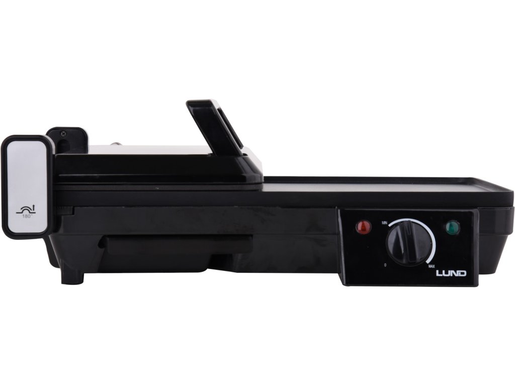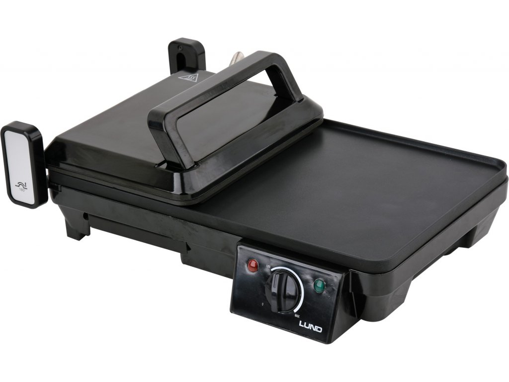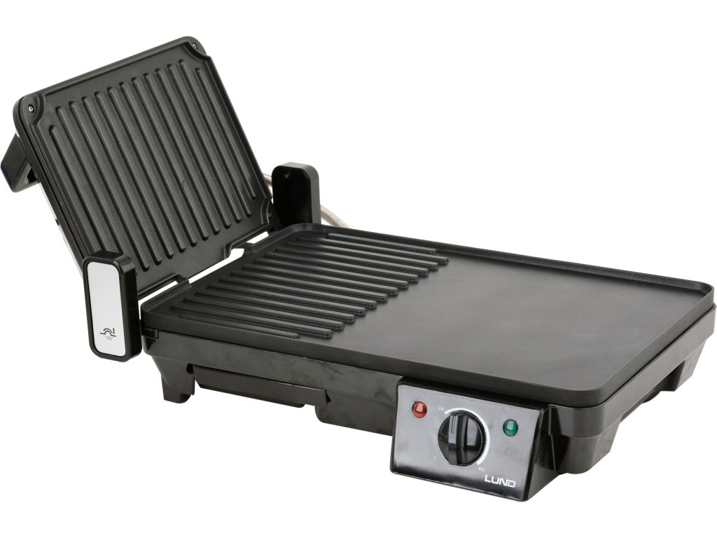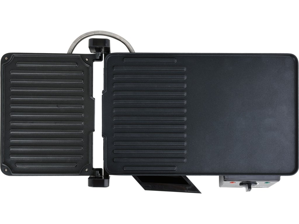 Regulovatelný příkon zařízení 2000W zajistí rovnoměrné a rychlé grilování na hlavní (40,5 x 25 cm) a vedlejší výklopné ploše (18 x 24,5 cm).