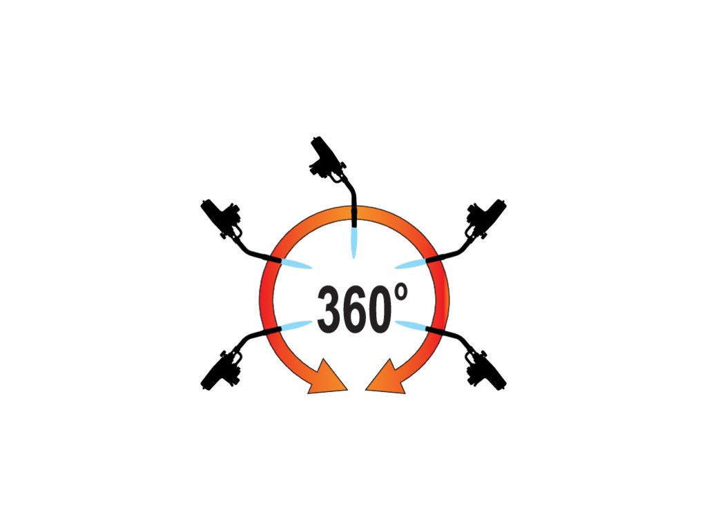 Hořák YATO lze ovládat pod úhlem 3600, což umožňuje bezpečnou práci v jakékoli poloze, i na těch nejhůře přístupných místech.