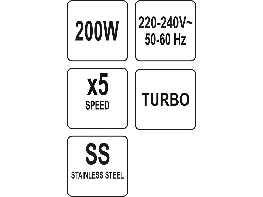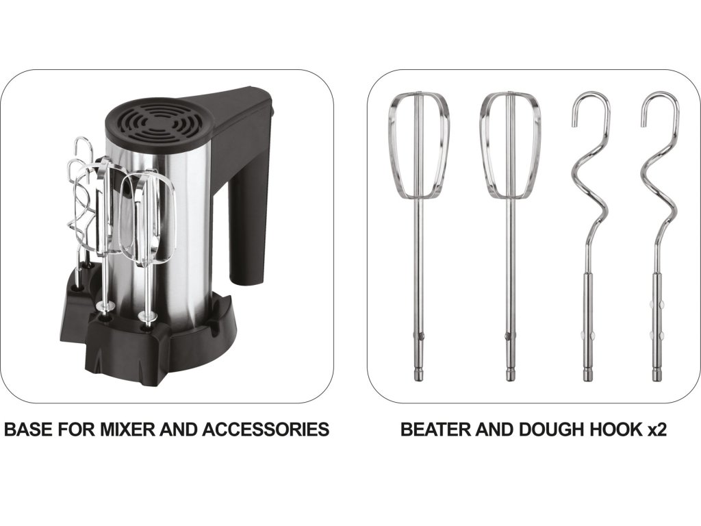 Balení obsahuje kromě mixéru pár metel a pár hnětacích nástavců.