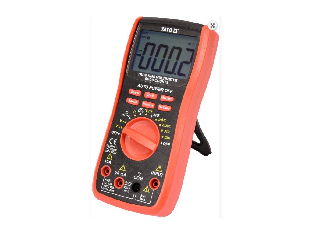 - Měření střídavého napětí: AC 0-600V, TRUE RMS