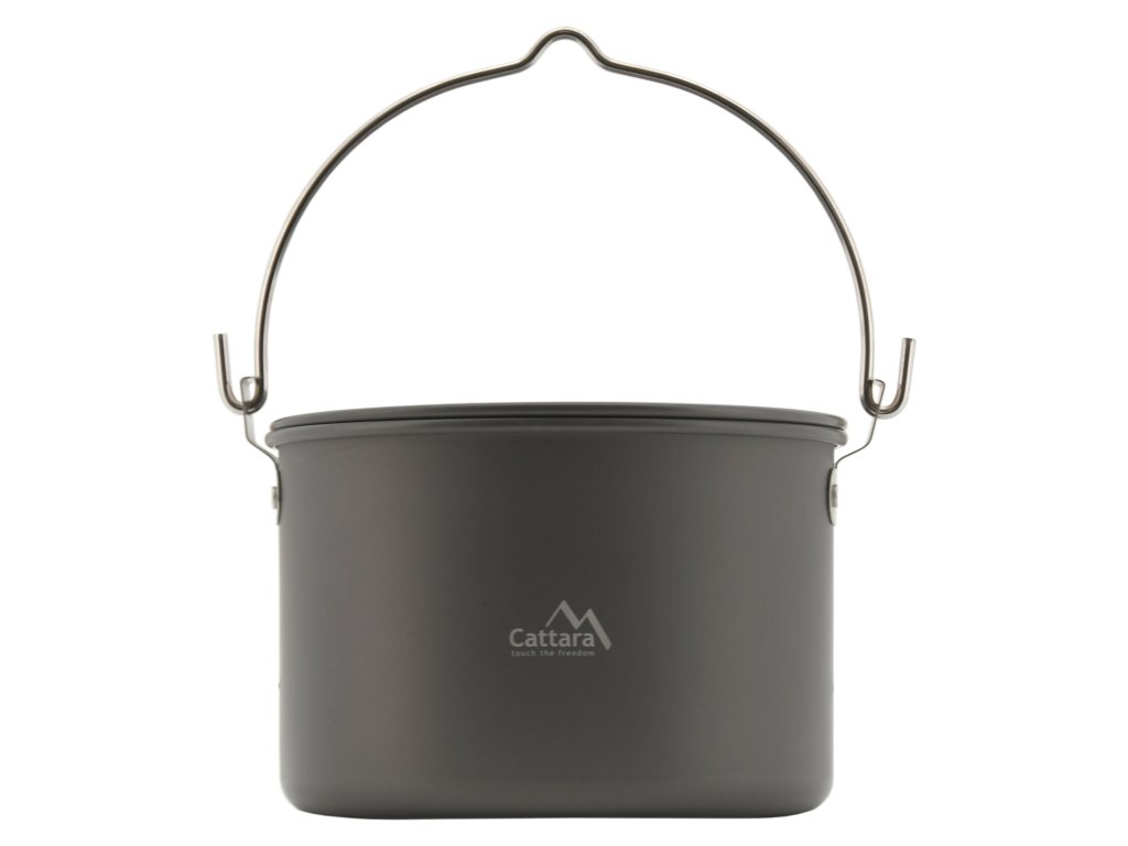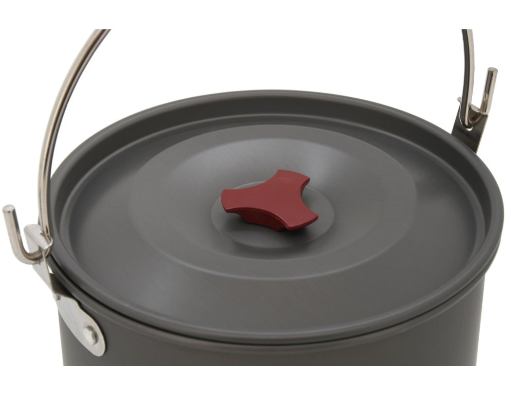 Kotlík je zhotoven z anodizovaného hliníku tmavě šedé barvy. Víko je opatřeno madlem pro pohodlnou manipulaci s ním a samotný kotlík je vybaven tvarovaným uchem pro možnost zavěšení za hák nad oheň.