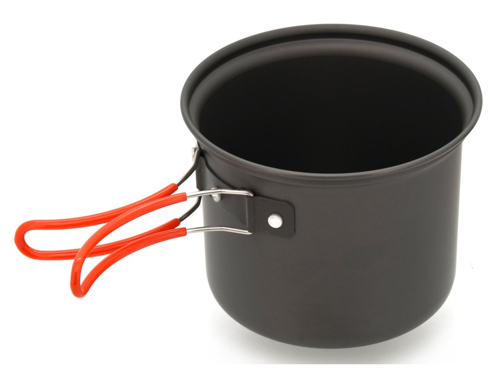 Sada outdoorového nádobí v provedení z anodizovaného hliníku.