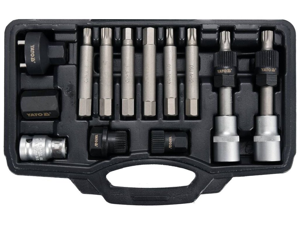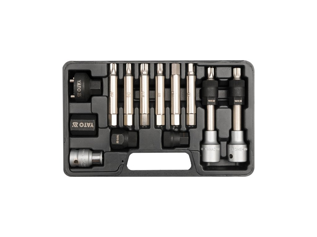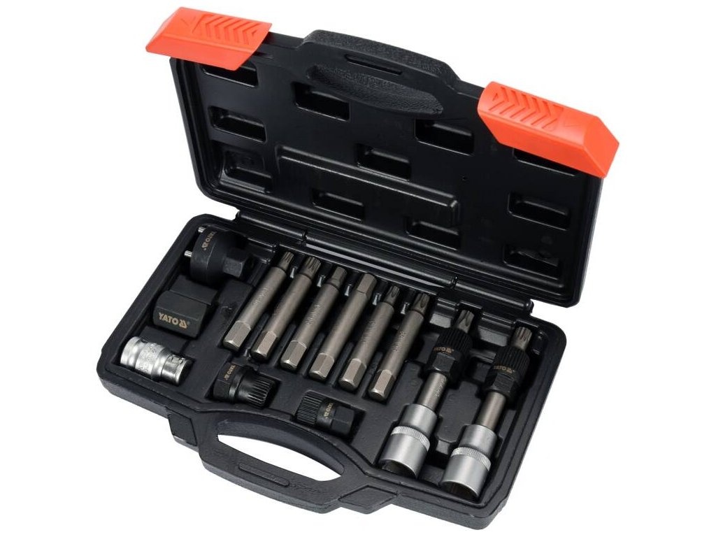 Sada je přehledně uložena v kufříku a jednotlivé nástavce jsou k použití s ráčnou 1/2".