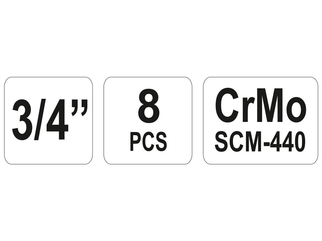 Sada nástavců 3/4" rázové šestihranné 8 ks CrMo