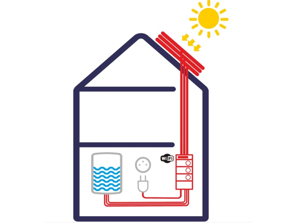Voda se ohřívá výhradně solární energií, síťový přívod slouží pouze pro napájení řídicí části a komunikačního modulu. Výkonová část pracuje v ostrovním režimu, fotovoltaická část je galvanicky oddělena od síťové části.