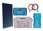 Solární systém 385Wp, optimálně navržený a za zvýhodněnou cenu s akumulátorem a měničem napětí. Pro víkendové nebo sezonní použití na chatě na : LED osvětlení, TV, Radio,...