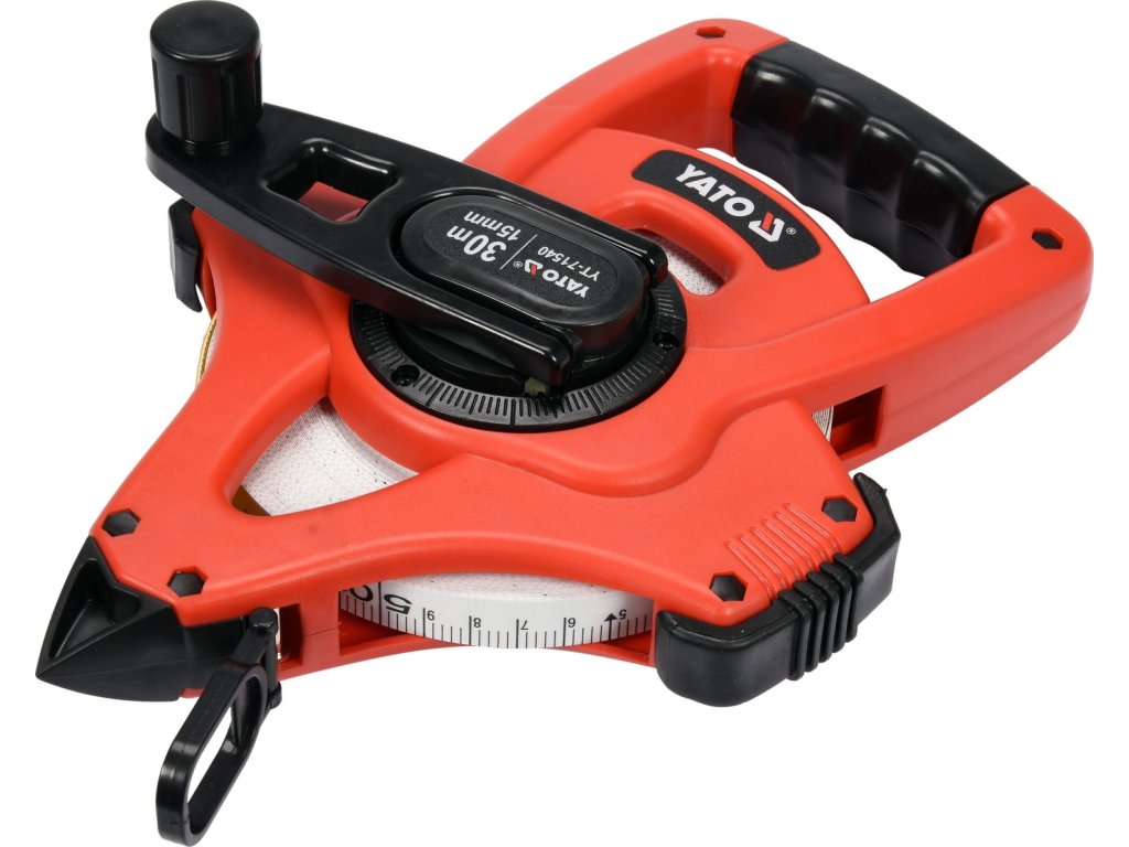 Měřící pásmo o délce 30 m s šířkou 15 mm.