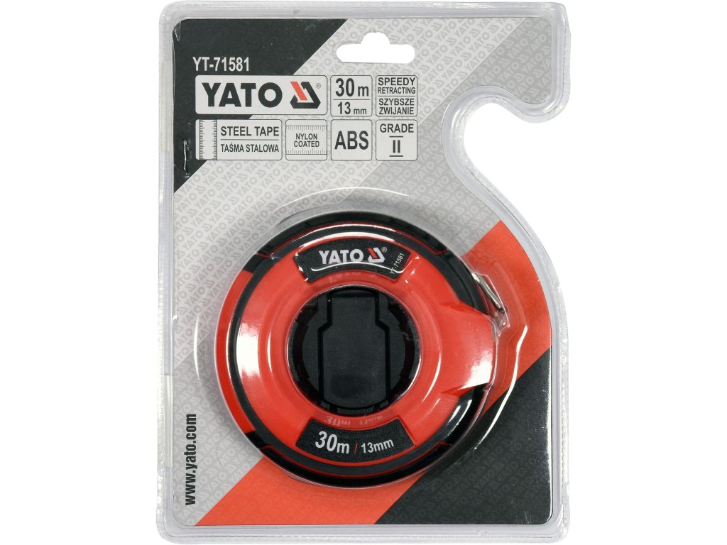 Měřící pásmo o délce 30 m s šířkou 13 mm.
