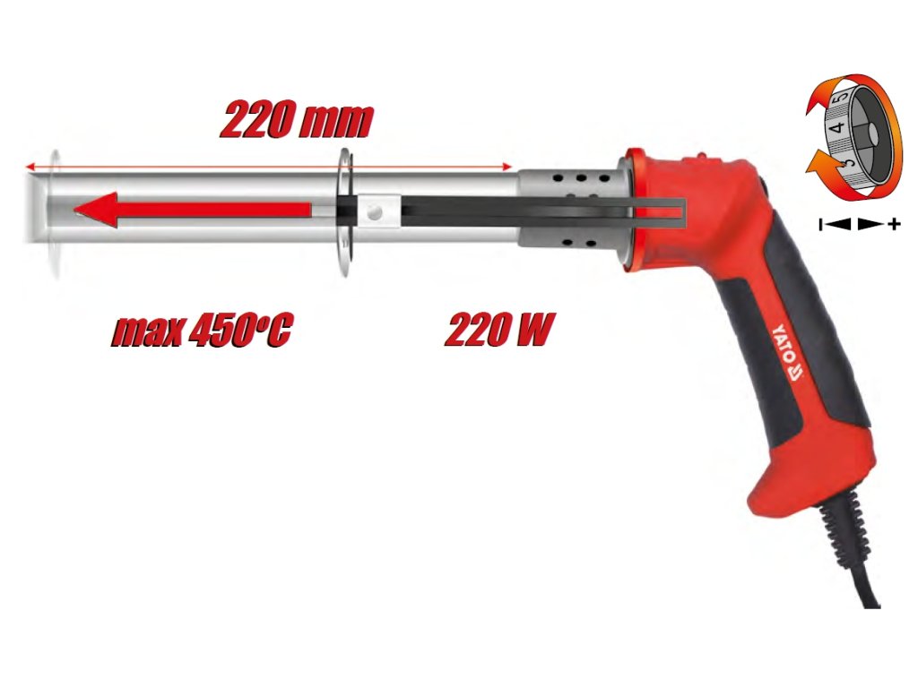 • Rozsah teploty nože 70-450°C – plynule nastavitelná