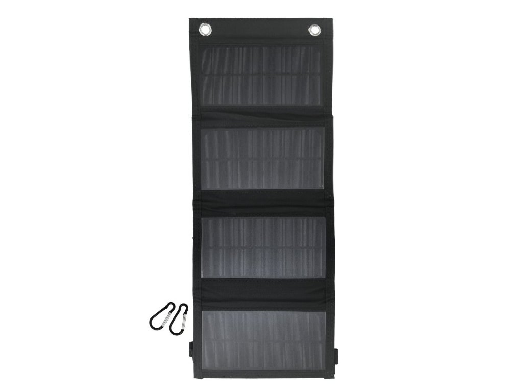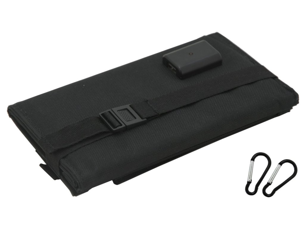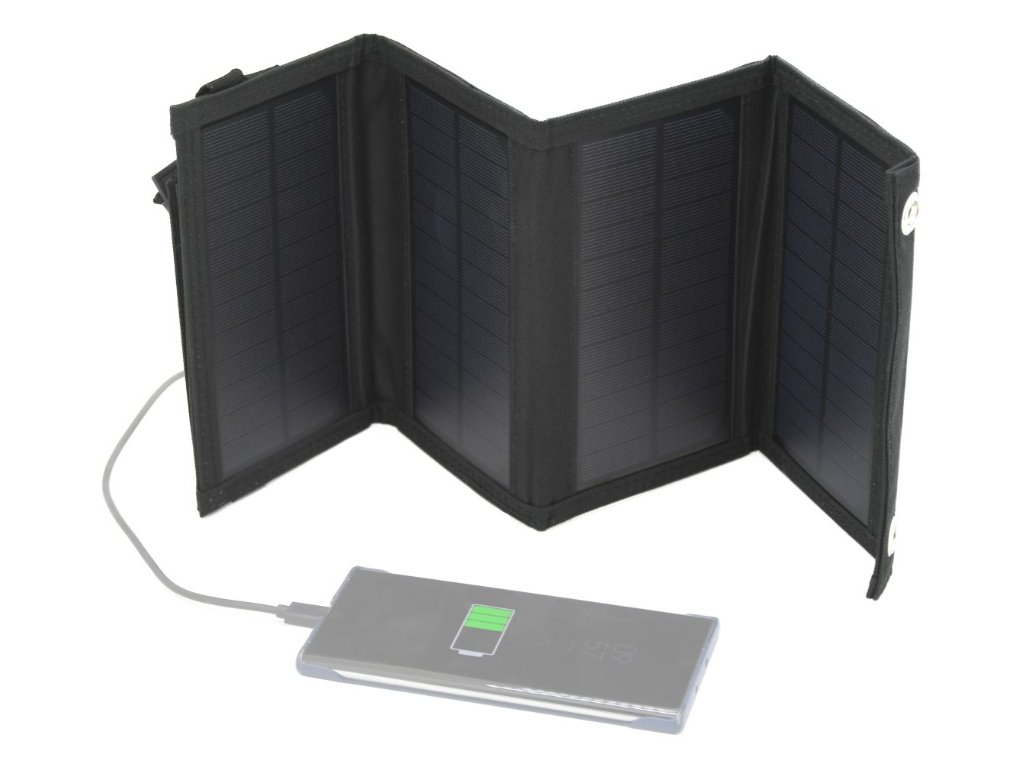 Komplet panelů stačí rozložit a umístit na slunce, případně pomocí přiloených karabinek zavěsit např. na batoh a pomocí USB kabeláže (není součástí balení) propojit nabíjecí modul panelu s nabíjeným zařízením.