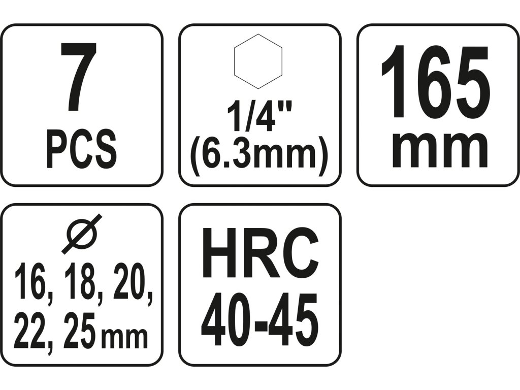Vrtáky v sadě mají průměry 16; 18; 20; 22; 25 mm a pro rychlé a efektivní vrtání jsou opatřeny 4 čepelemi.