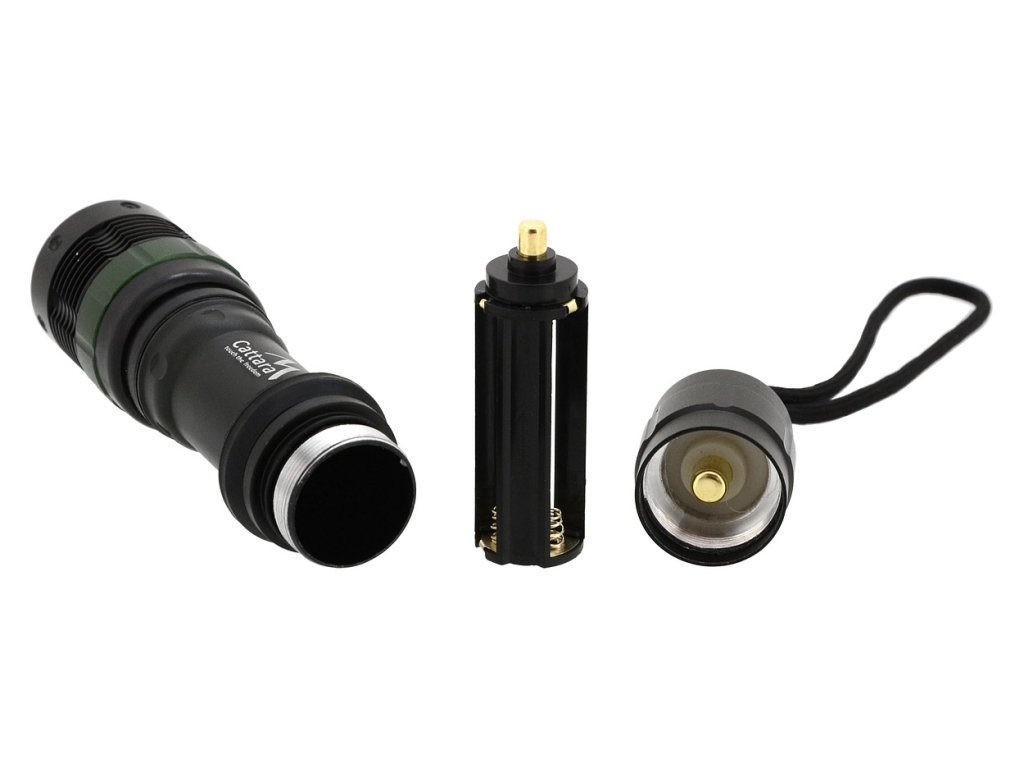 O napájení se postarají tři AAA baterie uložené v těle pod šroubovacím víkem na konci svítilny a nabídnou výdrž až 3 hodiny v plném světelném režimu. Baterie nejsou součástí balení.