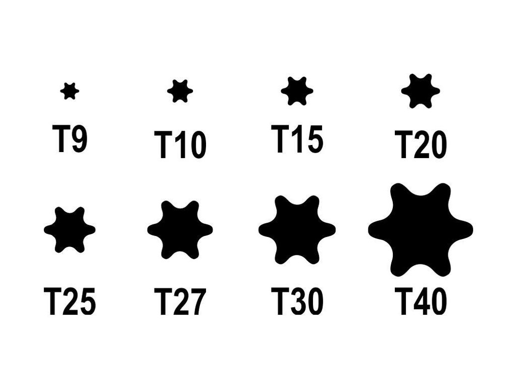 T9; T10; T15; T20; T25; T27; T30; T40.