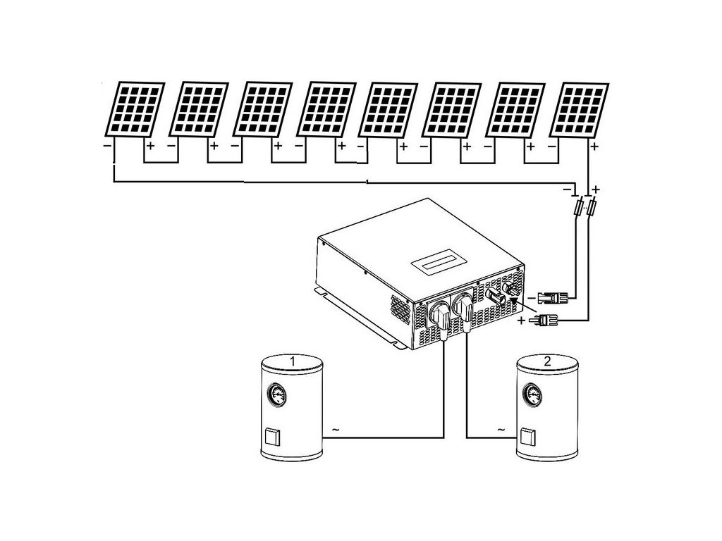 Systém je jednoduchý, vyžaduje pouze připojení 8 typických fotovoltaických panelů s provozním napětím cca 32V nebo odpovídajícího počtu dalších a přijímače energie, např. elektrického kotle, podlahového vytápění.