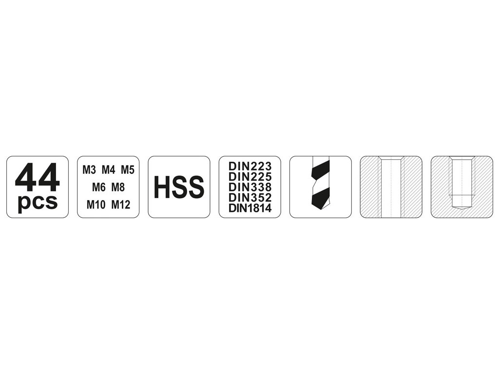 Souprava závitníků 44ks, M3, M4, M5, M6, M8, M10, M12
