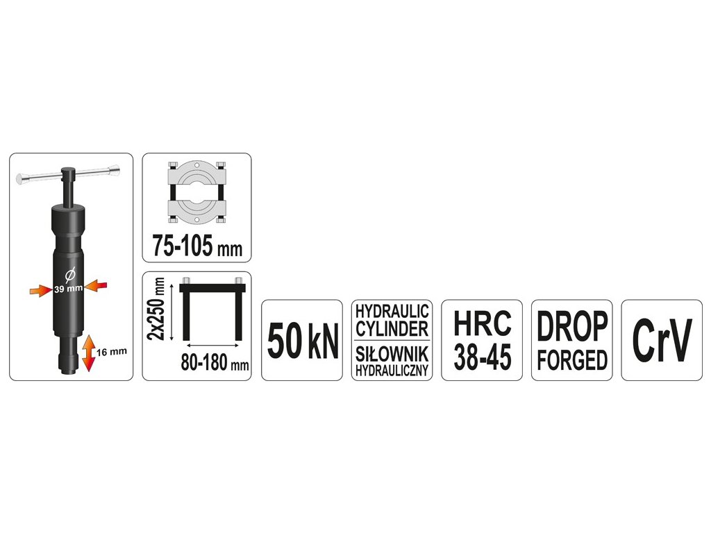 Konstrukce základny, držící válec, má výšku 250 mm a nastavitelnou šířku 80 - 180 mm. Upínka ve spodní části mechanismu je stavitelná pro rozměry 75 - 105 mm. Válec průměru 39 mm je opatřen vytlačovacím trnem a T rukojetí. Trn se vytláčí až do vzdálenosti 16 mm.