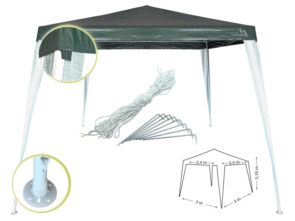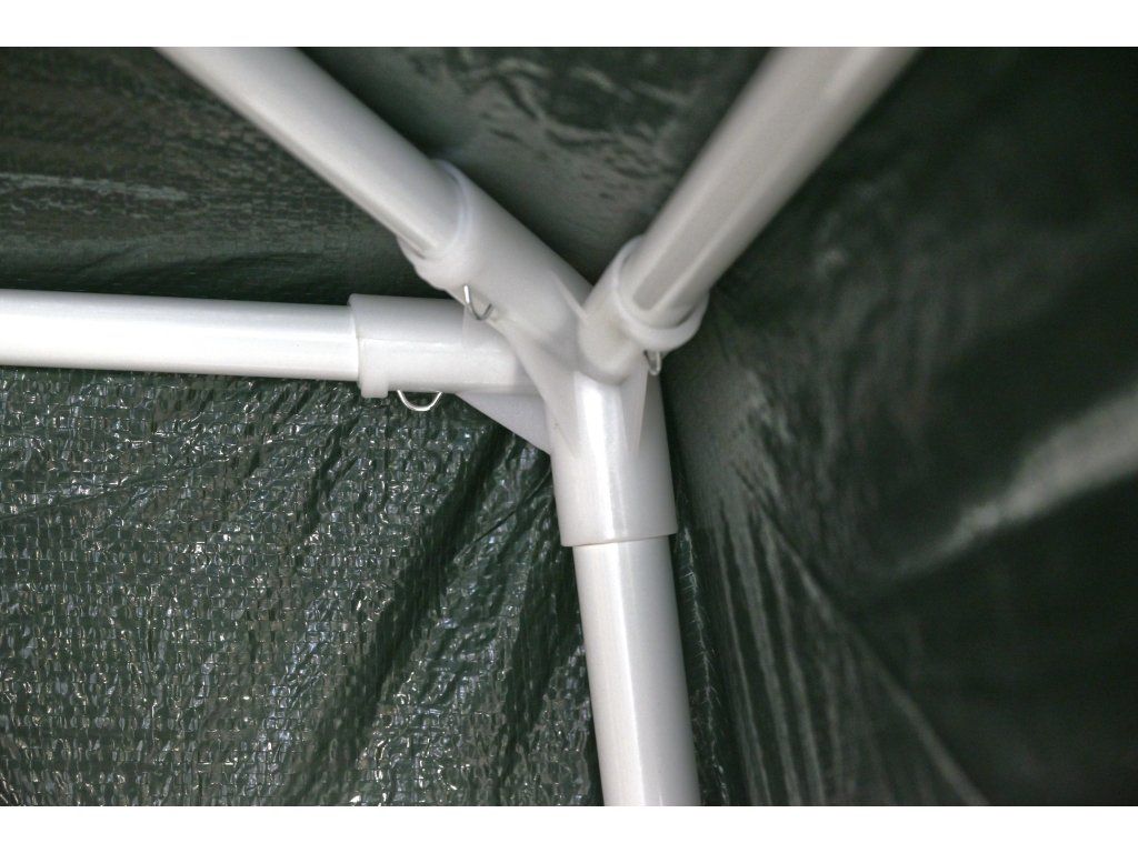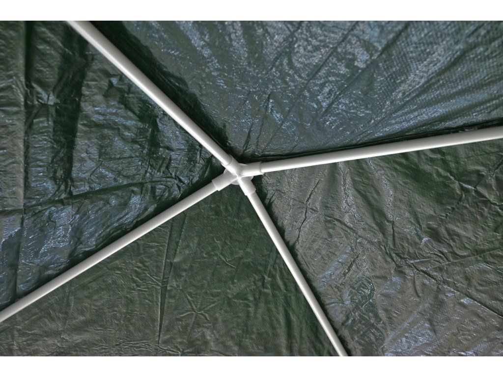 Nepromokavý materiál zajistí použití stanu při slunném dni i v deštivém počasí. Stan ASSEN je ideální řešení pro zahrady bez zastřešených teras. Střecha zabírá prostor 2,4 x 2,4 m.