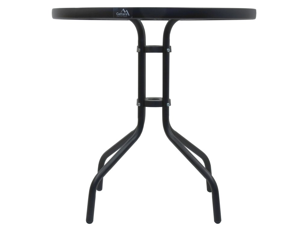 Plocha stolu je tvořena tvrzeným sklem se vzhledným designem. Sklo je opatřeno kovovým obvodovým prstencem. Průměr stolu je 70 cm a deska je umístěna ve výšce 72 cm.