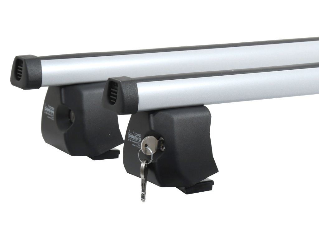 Uzamykatelný aluminiový střešní nosič pro vybrané vozy. Kompletní sada nosič + patky, montáž na lem karoserie nad dveřmi. Barva stříbrná, odolná celoaluminiová konstrukce s vysokou odolností. Pozor, nosič není určen pro vozidla s podélníky (hágusy).