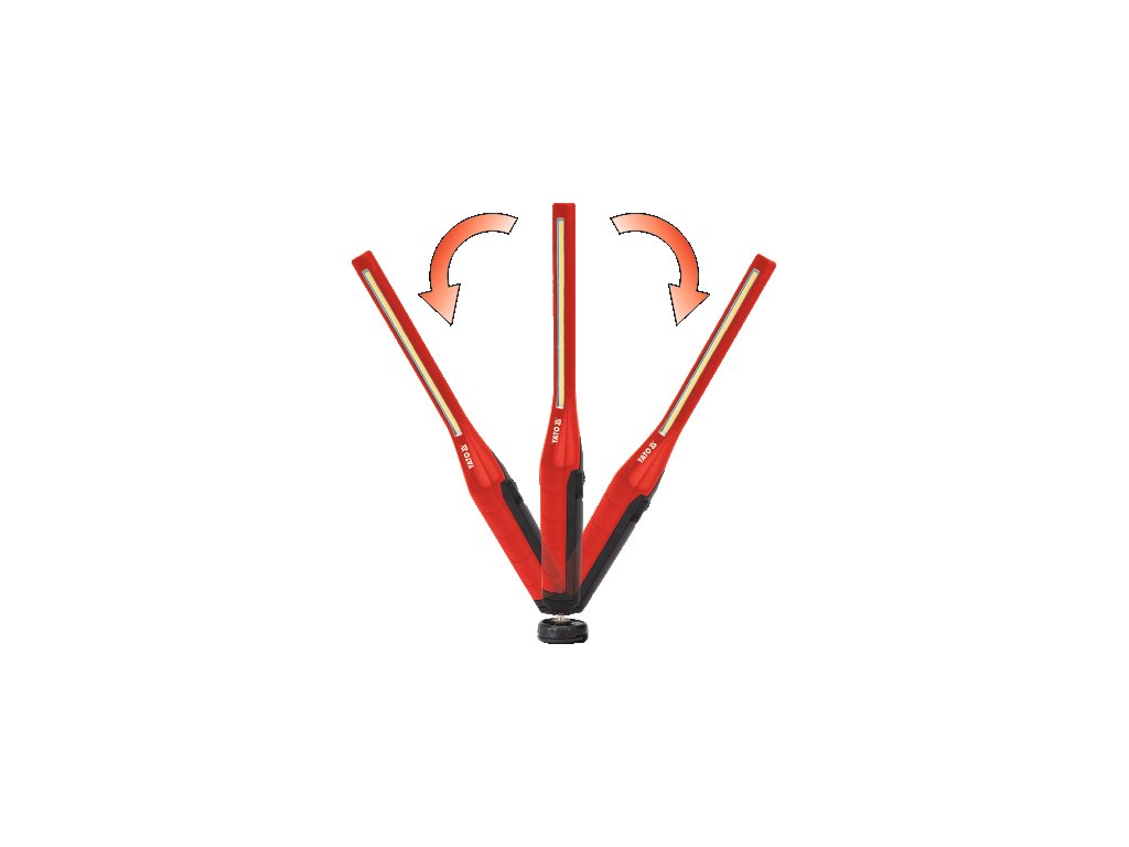 O 360° otočné tělo upevněné na základně s magnetem umožňuje libovolné nastavení polohy svítilny, s přesně nasměrovaným světelným paprskem.
